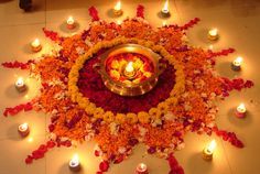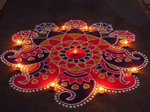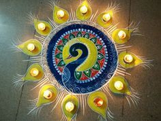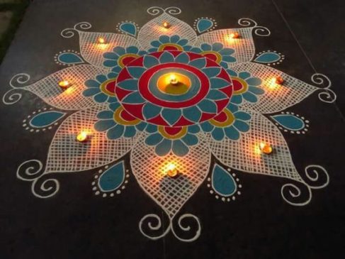 7. Candle Decoration In Rangoli for Diwali Decoration