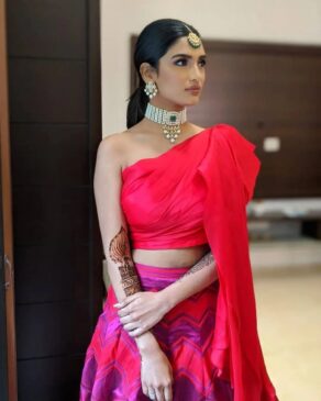 What are the most fashionable ghagra blouse designs for your engagement party or cocktail party? A choli with only one shoulder! It’s the one element that’s absolutely lacking from your wedding attire, as it’s equal parts gorgeous and cultural. One-shoulder styles with sequins are currently quite popular among urban brides, so you should absolutely jump on board since it will not disappoint. Not just the visitors, but also your fiance will be speechless when he sees you in this attire, and you can take our word for it.